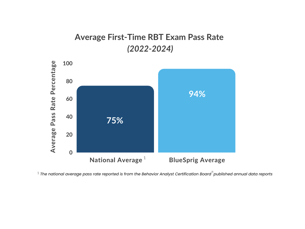 In fact, our internal data shows that first-time pass rates for the BACB’s RBT and BCBA exams consistently exceed national averages—highlighting the strength of our training programs and the readiness of our clinicians. These outcomes reflect our commitment to excellence and ensure that ABA therapy results extend far beyond the clinic.
